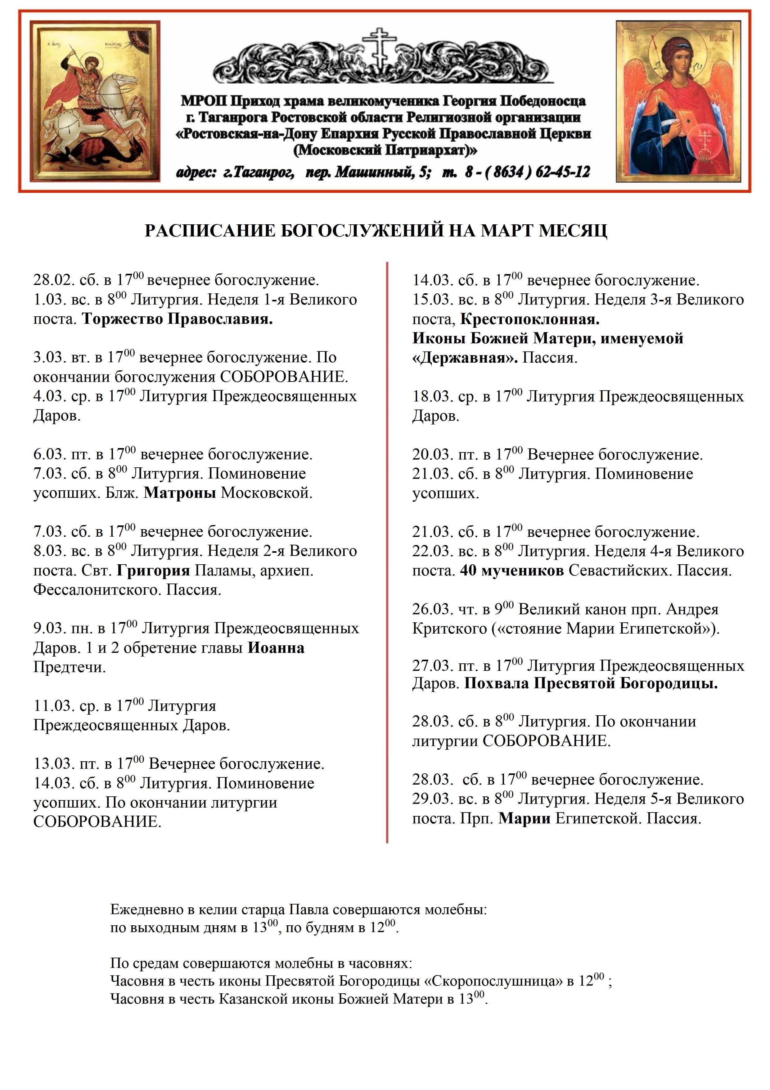 6.03. пт. в 1700 вечернее богослужение.